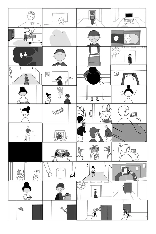 Delivery is a 3D film exploration of the prevalence of mishaps in daily life. It features characters’ unpleasant accidents, which initially discourage them but turn out to be a blessing in disguise, bringing connections with others. The motion design is minimalist in style. Settings include common, everyday places, such as streets, offices, and sports arenas, inviting viewers to relate the stories to their own experiences more efficiently.